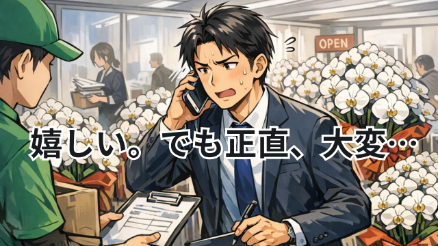 お祝い花が届くと、必ず誰かが対応しなければなりません。
